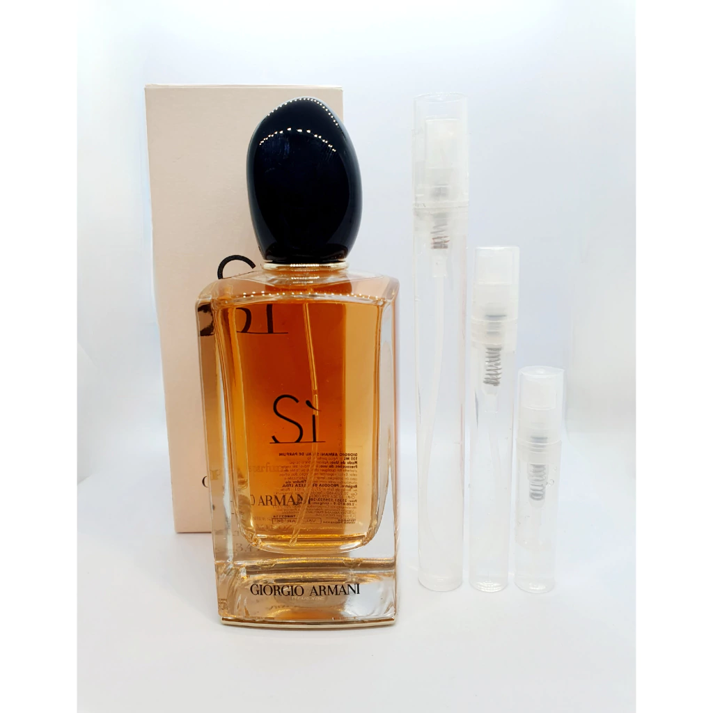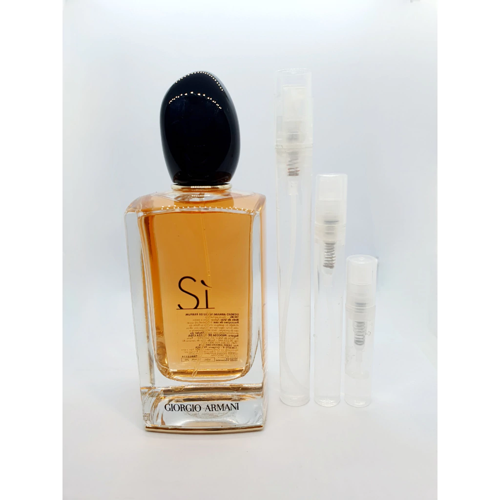 Sì combina três acordes para chegar à perfeição: néctar de cassis, um chipré moderno e um leve musk amadeirado. A fragrância abre com notas de Bergamota siciliana, óleo de tangerina e licor de cassis que são enobrecidos por acordes de alecrim, neroli e jasmin egípcio. Nuances mais quentes carregam a nota chipré totalmente original do perfume, formada por óleo de Patchouli, madeiras claras, amber e OrcanoxTM. Fechando a fragrância, o doce odor da baunilha prolonga a sensação de sentir-se perfumada ao longo de todo o dia.